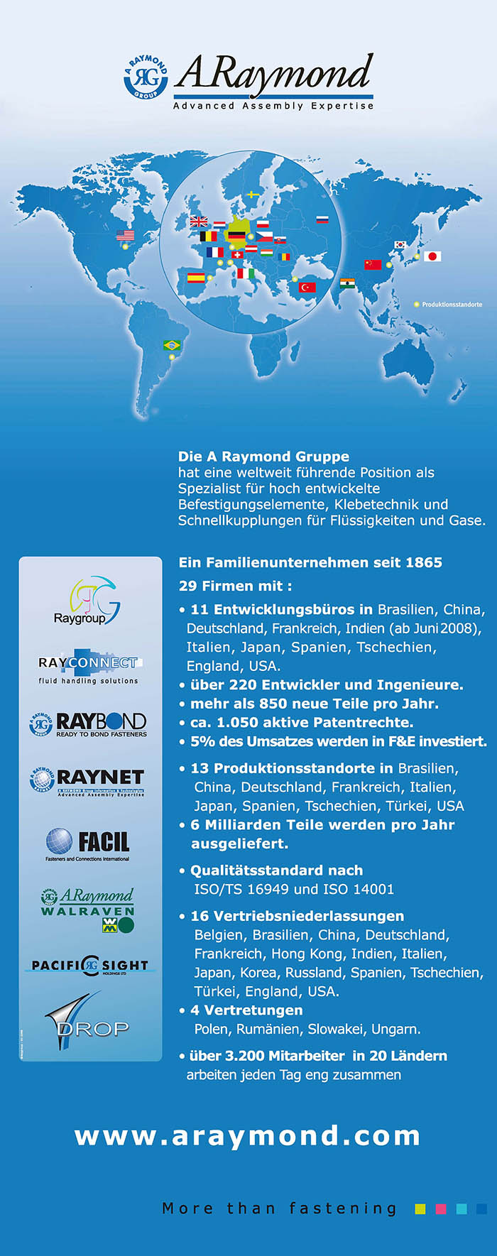 Die A Raymond Gruppe ist weltweit einer der führenden Hersteller für Befestigungen in der Automobilindustrie.